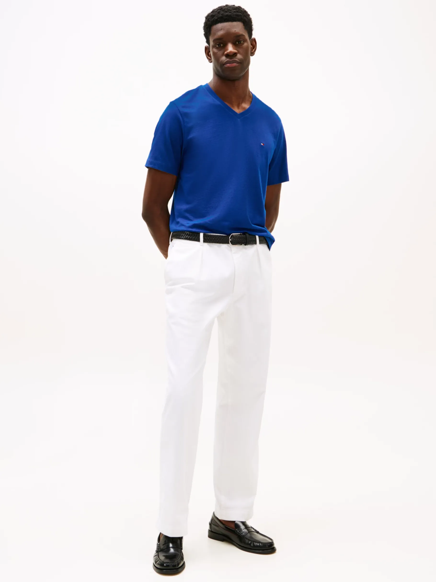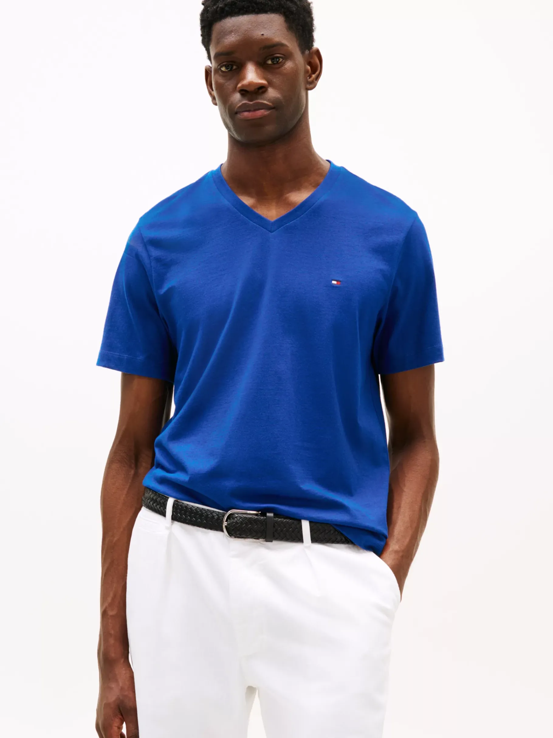 Setze auf einen zeitlosen Look mit diesem T-Shirt aus reiner Baumwolle samt V-Ausschnitt und aufgestickter Flag.