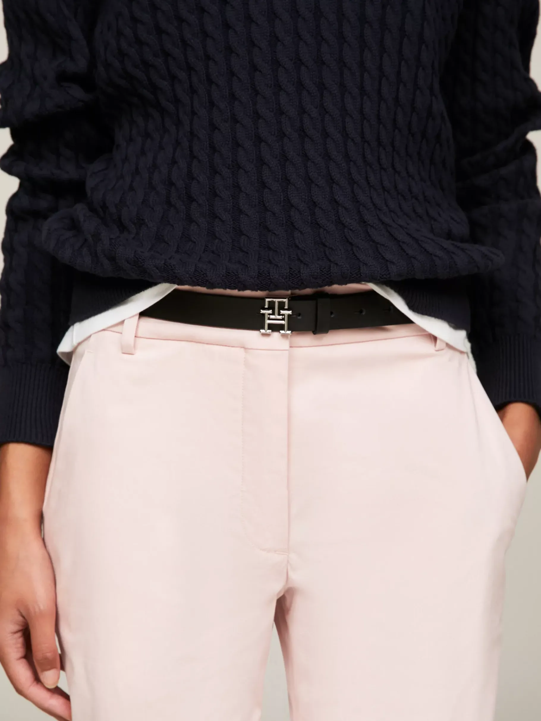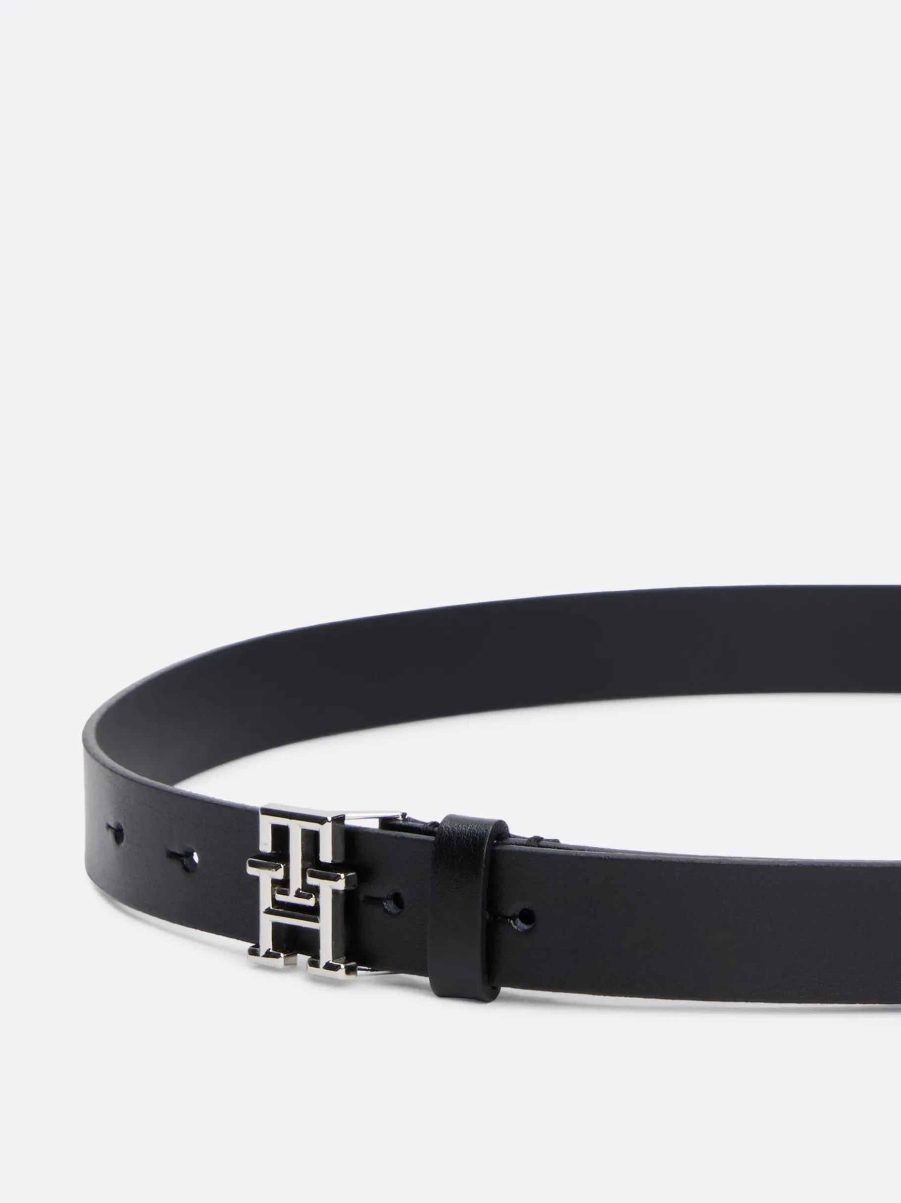 Dieser elegante Ledergürtel mit TH-Monogramm-Schnalle sorgt für coolen Tommy Hilfiger-Style mit luxuriösen Vibes.