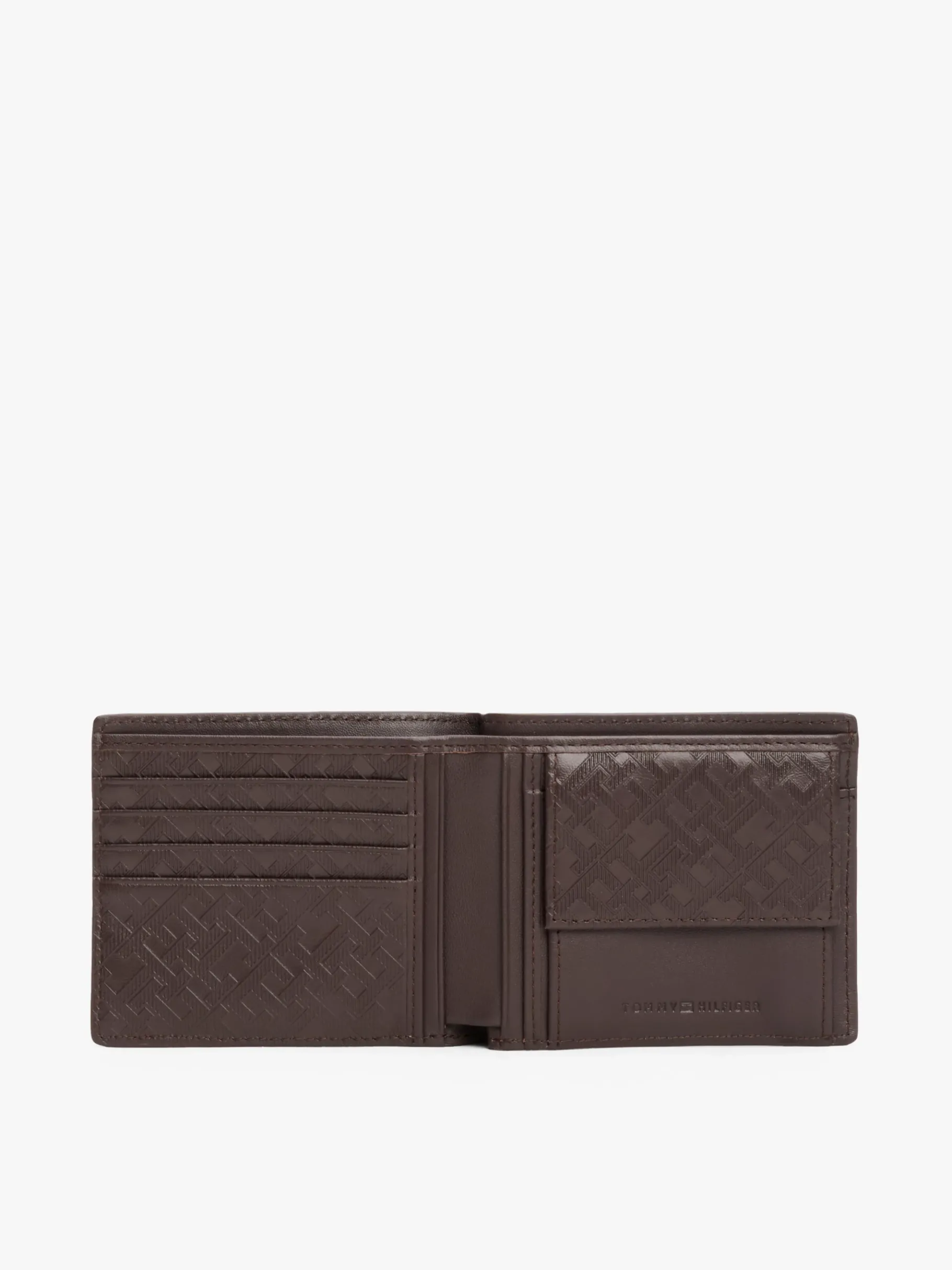 Diese Bifold-Brieftasche aus Leder im minimalistischen Design hat ein edles Metallic-Logo und innen ein TH-Monogramm-Muster.
