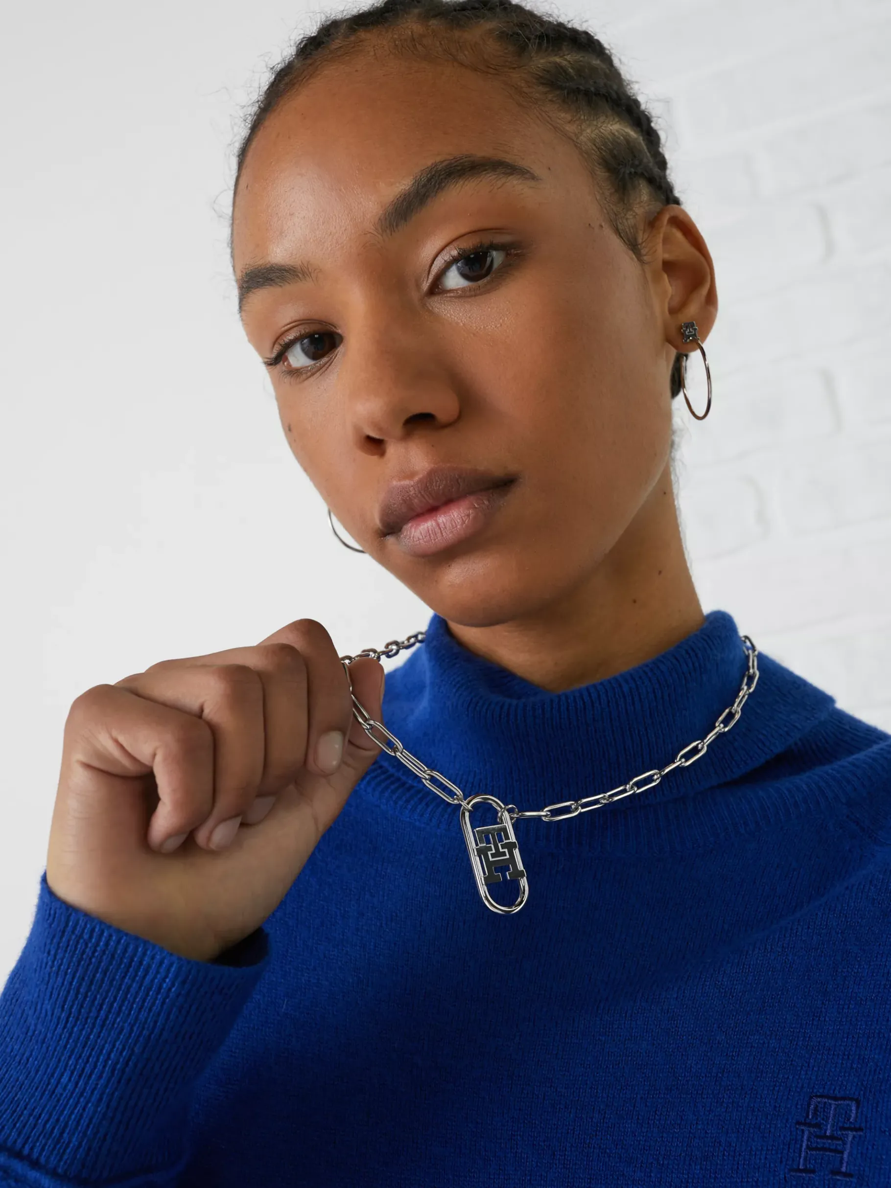 Verleihe deinem sportlich-eleganten Look eine funkelnde Tommy-Note durch diese Halskette mit einem Anhänger in Form des TH-Monogramms.