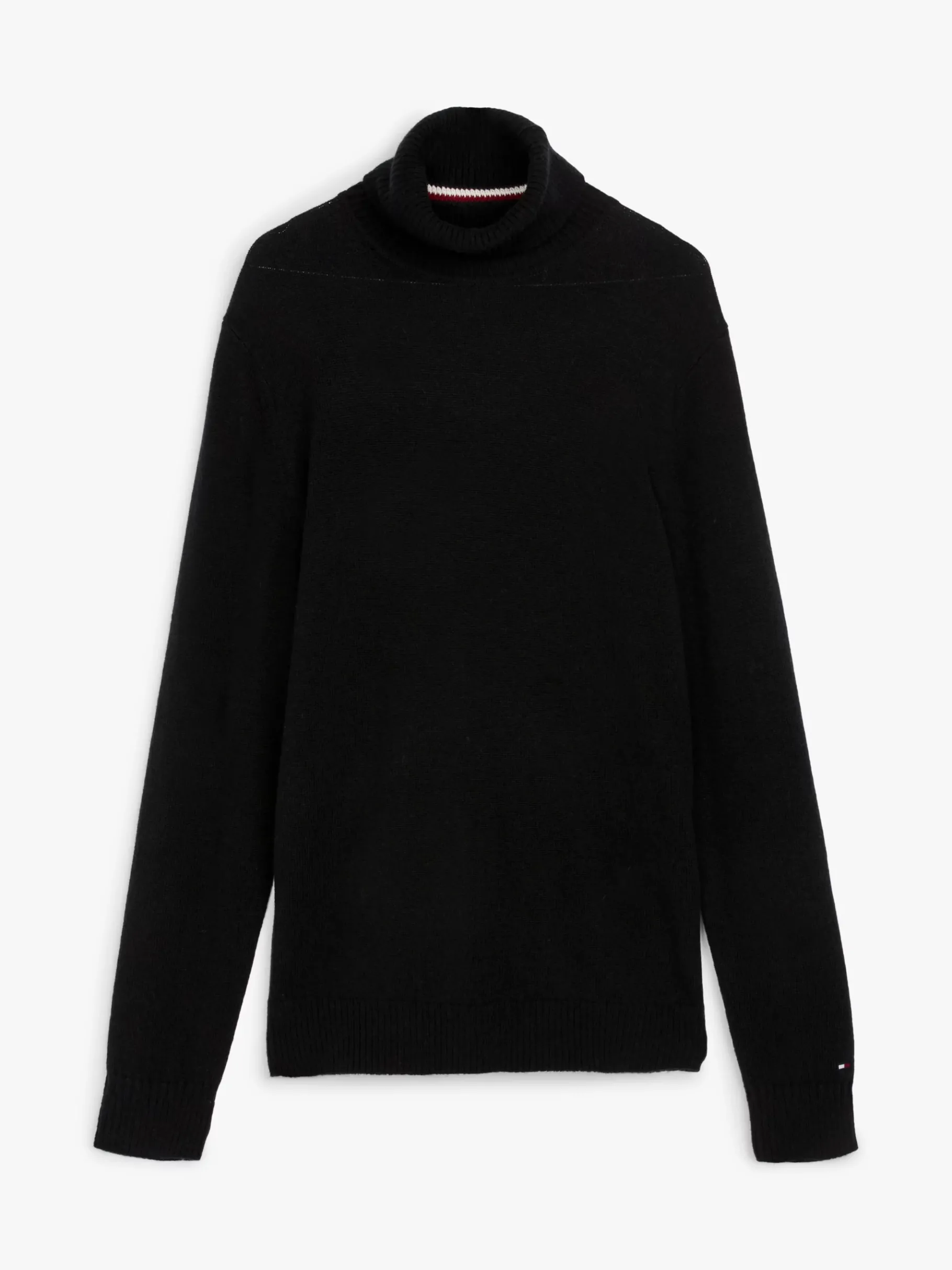 Dieser softe Rollkragenpullover aus Wolle bringt schlichte Eleganz in smarte Outfits. Rippstrick-Bündchen und eine aufgestickte Tommy Hilfiger Flag ergänzen das Design.