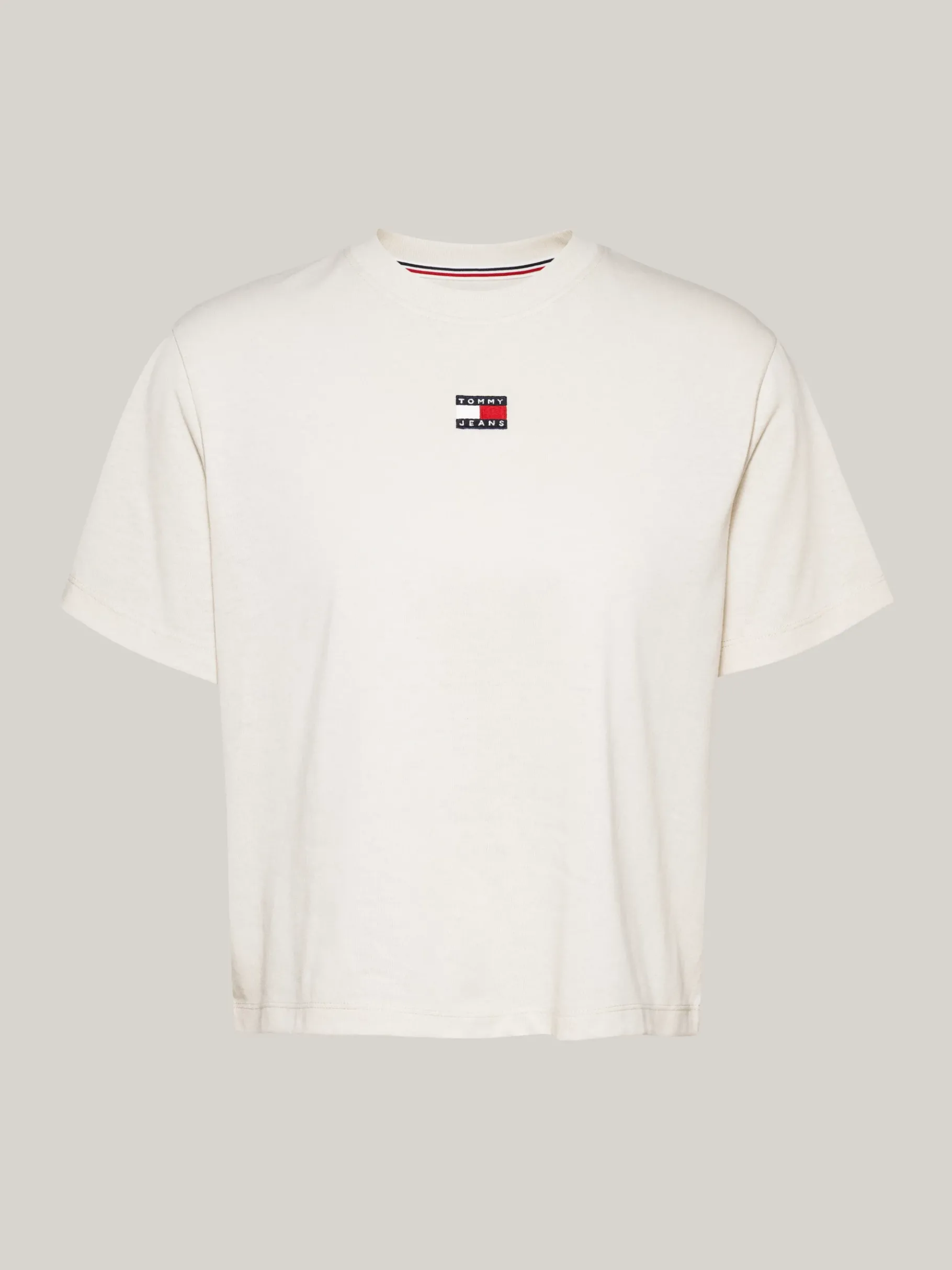 Dieses Boxy Fit T-Shirt mit Tommy-Badge auf der Brust bringt dezente Branding-Vibes in deine Wochenendoutfits.