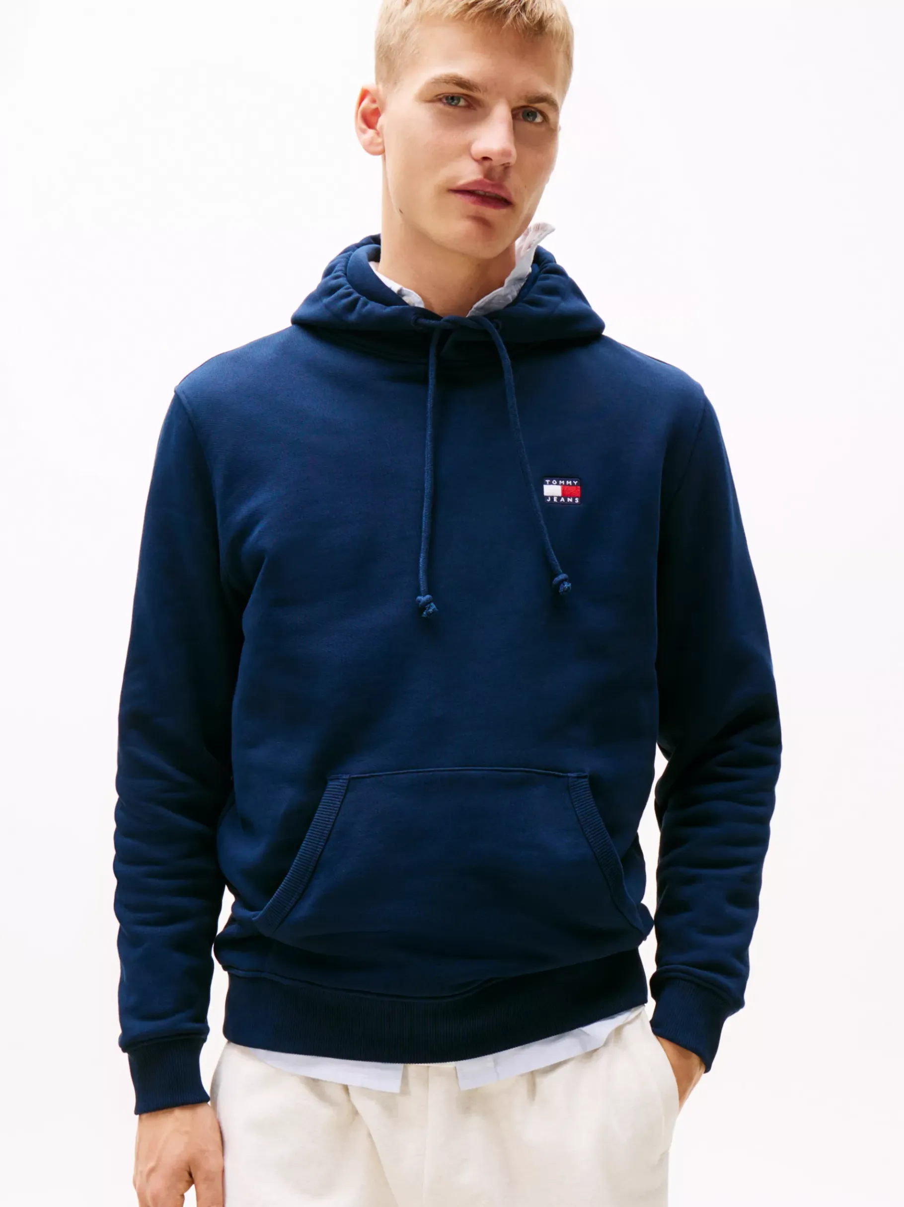 Ein Tommy-Badge auf der Brust verleiht diesem Hoodie klassische Tommy-Vibes, während die Hände in der praktischen Kän…